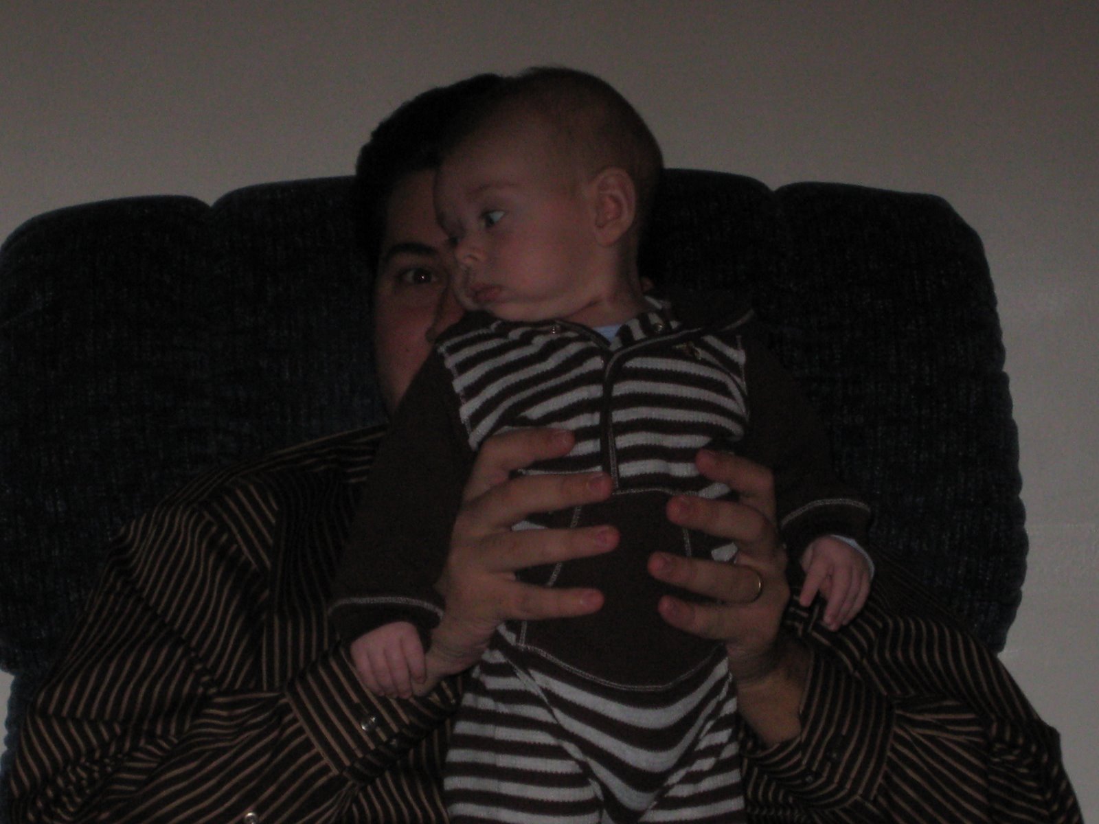 Johnny is always standing. He doesn't like to be held like a baby. Even though he is, an um, baby. He wants to stand up. All the time. Whenever i try to take a picture of him with someone, i only end up getting him. Cause he stands in front of their face!